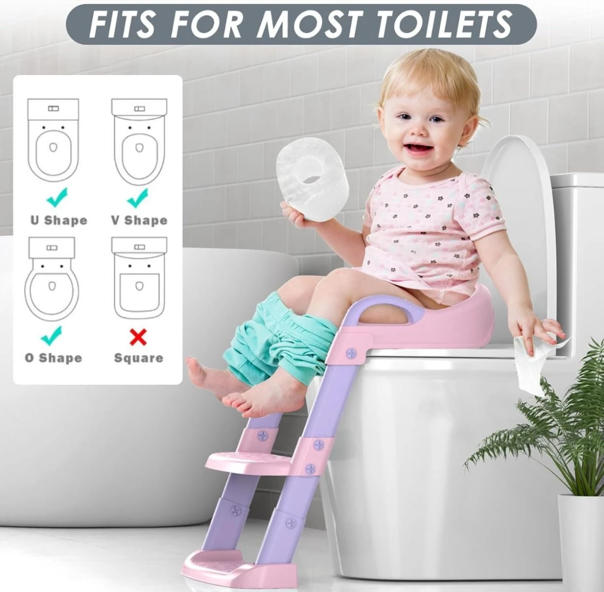 Asiento de entrenamiento para ir al baño con escalera, para niños de 1 a 5 años (30kg), bonito diseño, desarrolle el hábito de ir al inodoro de forma independiente mientras se divierte.